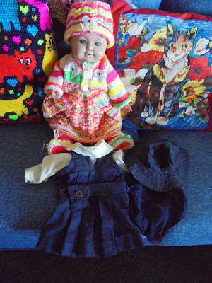 My large celluloid doll at the back is wearing an outfit from Big W baby wear department. Small doll in front has had her outfit from eBay for a few months.